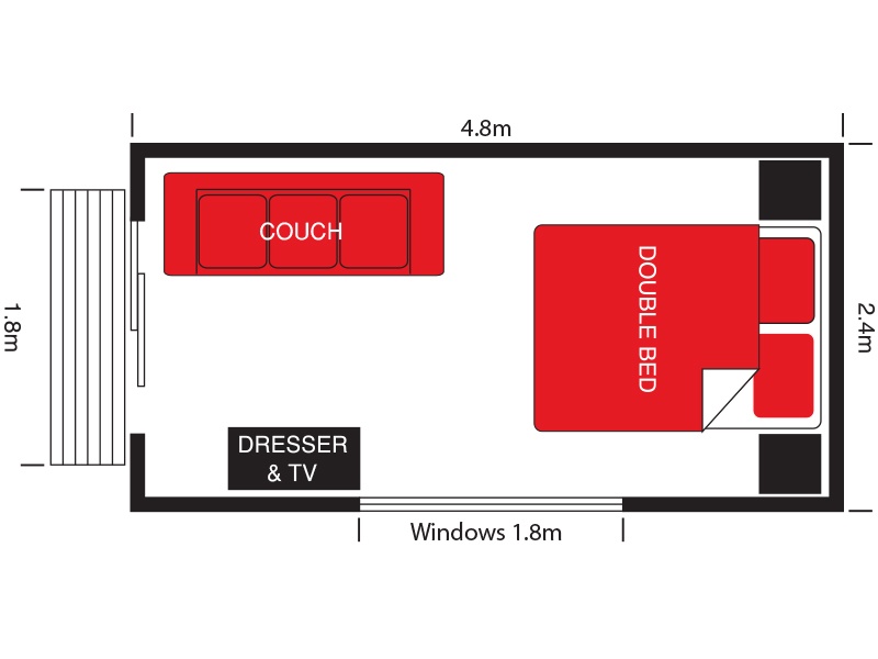 There’s room for a double bed, couch, and drawers, making it a quick and easy way to create a self-contained space for your teenager or in-laws. Styled to suit any furniture, they will feel right at home!