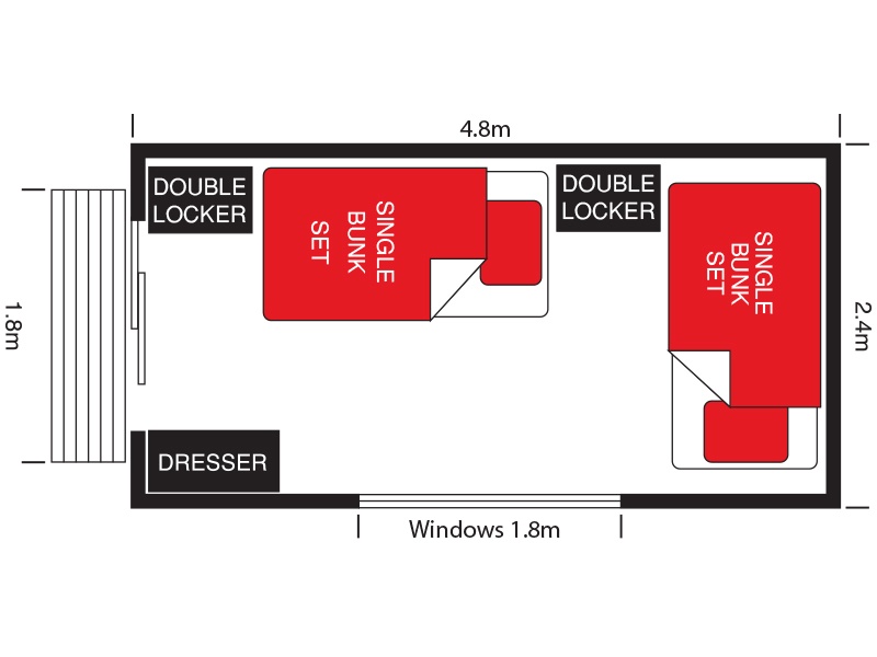 Our Extra Large rental cabin is 4.8m x 2.4m so is spacious and suitable for all situations.