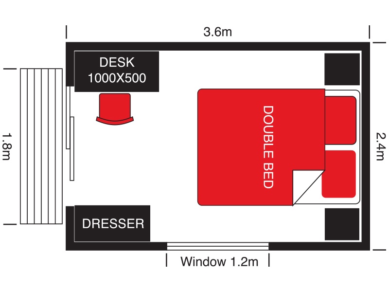 It’s big enough for a double bed, drawers and desk so it works well as a cosy, private bedroom. As a home office or studio, the Standard cabin can easily accommodate a large desk, or two smaller ones, plus a filing cabinet and some shelving. With modern design features, a colour scheme to suit any furnishings and plenty of natural lighting, our quality cabins have been created with comfort in mind.